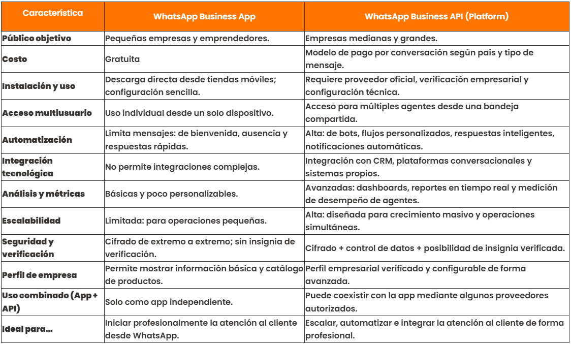 | Ideal para… | Iniciar profesionalmente la atención al cliente desde WhatsApp. | Escalar, automatizar e integrar la atención al cliente de forma profesional. |